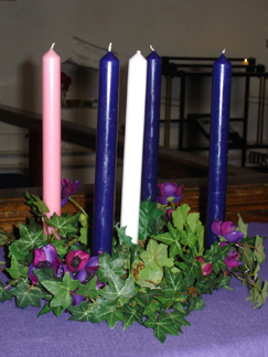 The Advent Wreath is a traditional devotion, involving an evergreen wreath with four candles attached and a central candle for Christmas. One candle is lit on each Sunday of Advent and prayers are said. People use a range of differently coloured candles, but my chosen pattern is three purple candles and one pink one (for the third Sunday of Advent, which is Gaudete (Rejoice) Sunday), with a white candle for Christmas. The purple picks up the liturgical colour of the season, and for this reason I prefer it to the red or white candles sometimes used, but there are many different local customs. You can download a PDF of the prayers: here CandleTheme 1Theme 2Theme 31st Patriarchs O Wisdom Hope 2nd Prophets O Key of David Peace 3rd John the Baptist O King of the Nations Joy 4th Mary O Emmanuel Love 5th Jesus (Christmas) Jesus Jesus Theme 1You could add symbols for these characters: a tent (Abraham and Sarah); a scroll (Isaiah and Jeremiah); a camel hair robe (John the Baptist); a rose (Mary). Week 1: Patriarchs