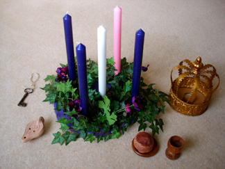 We light this candle to remember Abraham and Sarah and all the faithful people of long ago. These people listened to God and trusted God. They went on a journey to obey God. We are also on a journey of faith, to know God better. Lord Jesus Christ, light of the world, be with us on our journey through Advent, that we may know you better. AmenWeek 2: Prophets![]() We lit the first candle to remember Abraham and Sarah and all the faithful people of long ago. Today we light the second candle to remember Isaiah and Jeremiah and all the prophets of long ago. These people listened to God and gave God's message to their neighbours and friends. They helped people understand what God is like and they shared God's promises for the future. We also watch and listen for God's voice. Lord Jesus Christ, light of the world, be with us on our journey through Advent, that we may know you better. AmenWeek 3: John the Baptist![]() We lit the first candle to remember Abraham and Sarah and all the faithful people of long ago. We lit the second candle to remember Isaiah and Jeremiah and all the prophets of long ago. Today, we light the third candle to remember John the Baptist. John helped the people to have a new start with God. He baptised them in the river Jordan. John helped them to realise that they should follow Jesus. We too, are followers of Jesus, looking for the signs of his coming. Lord Jesus Christ, light of the world, be with us on our journey through Advent, that we may know you better. AmenWeek 4: Mary![]() We lit the first candle to remember Abraham and Sarah and all the faithful people of long ago. We lit the second candle to remember Isaiah and Jeremiah and all the prophets of long ago. We lit the third candle to remember John the Baptist. Today, we light the fourth candle to remember Mary, the mother of Jesus. When Mary was asked to be the mother of Jesus, she said, 'Yes'. When God asks us to do something, may we be ready to say 'Yes'. Lord Jesus Christ, light of the world, be with us on our journey through Advent, that we may know you better. AmenChristmas Eve / Christmas morning:![]() We lit these four candles through Advent to remember: Abraham and Sarah, Isaiah and Jeremiah, John the Baptist and Mary. All these people lived out their faith so that God’s will would be done on earth. Today, we light the candle of Christmas to welcome Jesus. Jesus is born, alleluia. He is the light of the world. Lord Jesus Christ, light of the world, we welcome you. Shine on us and help us to reflect your light. AmenTheme 2You could add symbols each week: an oil lamp (wisdom); a key (Key of David); crown (King of the Nations); a chalice and host (Emmanuel). Week 1: O Wisdom![]() We light this first candle to ask for the wisdom of God. All things begin and end with God. God is so wise that he created the universe - from the largest planet to the tiniest microbe. God sent Jesus, and all the wisdom of God was in him. One of the titles given to Jesus is the 'Wisdom of God'. In Advent, we pray for him to come near to us and help us. O Wisdom, coming from the heart of God and filling all creation, come and teach us the way of truth. AmenWeek 2: O Key of David![]() We lit the first candle to ask for the wisdom of God to come near to us and help us. We light this second candle to ask God to rescue us and give us life. Today we begin our prayer, 'O Key of David'. Jesus is sometimes called the 'Key of David'. He belongs to the family tree of King David and he can open the way to God, just as a key opens a locked door. O Key of David, open for us the doorway of life. Free us from every kind of darkness and bring us into your light. AmenWeek 3: O King of the Nations![]() We lit the first candle to ask for the wisdom of God to come near to us and help us. We lit the second candle to ask God to rescue us and give us life. We light this third candle to ask God to help every nation on earth. We pray for our own country quite often and for other countries sometimes, but today we pray for every nation and country and race on the earth. Jesus is sometimes called the 'King of the Nations' and so this is how we begin our prayer: O King of the nations, only you can speak to the dreams of every group and draw us together to live as one on the earth. Rescue us, because we are all your sons and daughters. AmenWeek 4: O Emmanuel![]() We lit the first candle to ask for the wisdom of God to come near to us and help us. We lit the second candle to ask God to rescue us and give us life. We lit the third candle to ask God to help every nation on earth. We light the fourth candle to ask that we may know Jesus better. The more we understand Jesus, the better we will know God. Jesus is sometimes called 'Emmanuel' which means 'God with us.' O Emmanuel, may we know you better and see your work of love in the world. Come to us and save us. AmenChristmas Eve / Christmas morning:![]() We lit these four candles through Advent to ask for God’s wisdom, to ask God to give us life, to ask God to help every nation on earth, and to help us to know Jesus better. Today we light the candle of Christmas and we rejoice that Jesus is born. He is the 'Wisdom of God', the 'Key of David', the 'King of the Nations' and 'Emmanuel'. All these titles belong to him, because he is God become a human being. All our prayers begin and end in him. Lord Jesus Christ, Son of the Most High God, we worship you. Lord Jesus Christ, son of Mary, born in a stable, we worship you, today and always. AmenTheme 3You could choose a particular place/situation in the world to intercede for throughout Advent, adding specific biddings each week. Week 1: Hope![]() We light this first candle to pray for hope. We pray for ourselves and for everyone. We ask that our hope will be fixed on God and that God will inspire us to hope for good things. We pray for everyone who feels that their hope has gone. May they find a new hope that shines like this candle flame. Lord Jesus Christ, hope of o