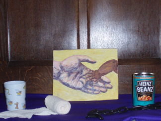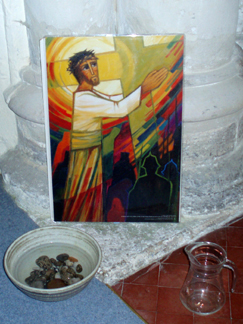 ConfessionStones Before the confession we take round baskets of stones, and everyone who wants one is given the opportunity to take one. The leader says: "Now we are going to have out time of repentance and forgiveness. Today we are going to use stones and water as symbols. As you take a stone you may like to think of the things you have done this week that have saddened God and for which you are sorry." Silence is kept until all the stones have been given out. ![]() We then use a simple responsorial confession. At first we asked people to come and place their stones in the bowl, but this did not work very well. We then tried taking a basket round to collect the stones. However, this seemed to add extra steps into the process (both practically and theologically!), so now the bowl is carried round and people place their stones directly into it. The leader says: "We are now going to gather up the stones. As they are being washed we are reminded of how Jesus washes our sins away." While the absolution is given, water is poured over the stones. Sometimes we place the stones on or near the altar; in the season of Easter we placed them in front of a picture of Jesus carrying the cross. Using Objects![]() "Lord, we heard that you were hungry and we did not share our food..." One of the confessions we use begins with this line. To symbolise this a child takes up an item of food (tin of beans, soup or a packet of rice) and places it on the floor. The confession continues with "Lord we heard that you were thirsty and we kept our drink to ourselves..." We symbolise this with a cup of water. It also includes "Lord we saw you as a stranger..." (a picture of a child's hand held by an adult's hand) "Lord we discovered you were sick" (bandage or ointment) and "Lord, we heard you were in prison..." (a chain). The congregational response is: "Forgive us, Lord, forgive." Using Pictures