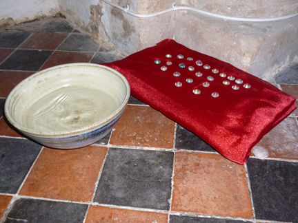 Everyone was invited to take a glass pebble which had the word "Sorry" written on it in red felt pen. After saying the words of the confession together, the congregation was asked to place their glass pebble in the bowl of water. As the word was washed away, the water turned red. with thanks to Janet BunkerOn the road