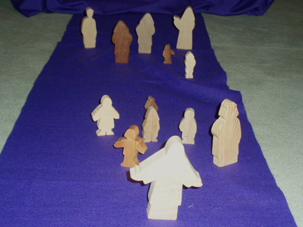 We used the wooden figures to tell this story: Every Sunday when we come to church we have a time to confess our sins... I wonder what sin is... There are many different ways of talking about sin. It can be difficult to find the right words to explain what sin is. Sin is what separates us from God. (Lay down the road, Jerusalem and Jesus). Christians are trying to come close to God. We are all on a journey together. But sin is like turning our back on God. We say, or think or do things that hurt God or hurt other people. Sin makes us lose sight of where we are going. We step off the road. (Turn people round and move them off the road) ![]() The good news is that we can turn round and find our way again. All we have to do is say sorry. We say sorry to God and he forgives us. Sometimes if we have done something to hurt someone else we might have to say sorry to them as well. (Move people back onto road, some approach each other) When we have said sorry we are back on the road again. We can be close to God. We have been forgiven. Everyone sins, every day. We can't help it because we are human. Only Jesus never sinned. That is why every week in church we have a time to say sorry for the things we have said or thought or done. Then the leader tells us that God has forgiven us. But we don't have to wait for Sunday to say sorry. We can say sorry any time we want to. (Move Jesus figure amongst the people) On a different occasion, with a larger congregation, this same story was told, but with real people. |