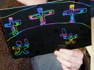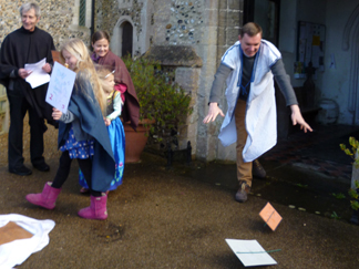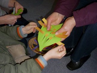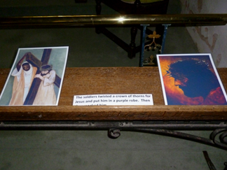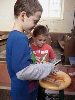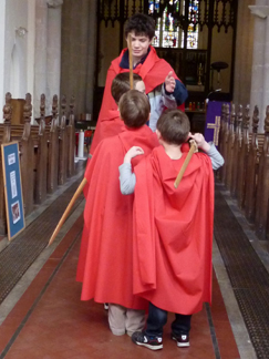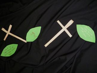 Hosanna: a Footsteps event for Palm Sunday![]() Our Palm Sunday event included drama, craft and activities, a space for prayer and a bring and share tea. It was structured on similar lines to Journeying in the desert and The Good Samaritan. As the children arrived they were asked if they wanted to be soldiers, stall holders or the people of Jerusalem. We provided red cloaks and wooden swords (made long ago by my son) for the soldiers and a variety of cloaks and dressing up clothes for the other characters. The stall holders were given placards and paper doves and the people of Jerusalem were given willow branches. Adults were asked to take the parts of Jesus (white robe) and the priest (black cloak). We asked a teenager to take charge of the soldiers and give them some marching practice. We began with a short welcome and opening prayer and then moved straight into the drama. Drama![]() We wanted to show the context for the events of Palm Sunday so we emphasised the presence of the Roman army, the role of the priests and the longing for a Messiah. "It was Passover time! Jerusalem was full of people coming to celebrate the Passover. Passover was the time when the Jews remembered how God had led them out of slavery in Egypt... They came to Jerusalem to celebrate... Everywhere you looked there were crowds of people. Some had come long distances to be in Jerusalem. But Jerusalem was an occupied city in an occupied country. It was the Romans who were in charge... (Roman soldiers marched down the aisle and out the door)The Jews longed to be free. They longed for the Messiah, God's chosen one, who would come and set them free... When would he come? Would he ever come? Meanwhile the Jews continued to worship God in the temple. The priests were in charge of the temple. They told the Jews how to worship, and how to live their lives... The priests were the most powerful people in Jerusalem." (The priest walked down the aisle and out the door)![]() At this point we played "Make Way" and the narrator asked the congregation to leave the church and go outside to line the path. We had set the money changers and dove sellers up in the porch, so people had to make their way past them in order to leave. The Roman soldiers were spaced out a short distance away from the path, giving the impression of being in an occupied country. Jesus entered by the gate and the crowd were encouraged to wave their palm branches, throw down their cloaks and cheer "Hosanna to the Son of David!" ![]() Jesus made his way up the path but the priest stepped forward and challenged him to quiet the crowd. "I tell you if the people were silent theses very stones would cry out." Jesus made his way into the porch, and overturned the tables of the money changers and dove sellers, shouting that they had made his father's house into a den of thieves. "Who is this troublemaker? What will he do next? We must do something about him..." Craft and activities![]() "Palm Sundaes":We used a Messy Church recipe for these "sundaes" which were made in clear plastic cups. The ingredients were: green jelly (representing the palms), pink angel delight (the crowd), crumbled digestive biscuits (the dusty road), whipped cream and chocolate sprinkles (just for fun). This was a very popular activity! ![]() Hobby horse donkeys:Another idea from Messy Church. We cut donkey heads out of card and the children coloured them and decorated them. The donkey heads were sellotaped to sticks so that the children could "ride" them. ![]() Palm Sunday collage:We taped a long strip of lining paper onto the floor and invited the children to print palm leaves along it. The children added people and the donkey in brown paint. ![]() Palm leaf weaving:Palm leaf shapes were cut out of a variety of coloured paper. Then four vertical slits were cut down the leaf. The children chose different coloured strips of paper to weave in and out. This activity took a while to get going. However, it proved popular after the food when the children tended to go round and try out all the activities they hadn't managed earlier. ![]() Cross and nails:The crafts also included some that were related to the rest of the Easter story as we knew most of the children would not be in church over Easter. They were given the opportunity to hammer four nails into a piece of wood and then to wind wool around the nails into a cross shape. This station needed a lot of adult supervision, and the finished result rarely looked cross shaped! ![]() The road to the cross - and after:We offered scratch cards - either in cross shape or as a rectangle - for the children to make their own responses. We also had stained glass hanging crosses that the children could colour in if they wished. ![]() What happened next?We wanted something that would encourage people to go deeper into the story. We used the chancel to spread out our pictures of the events of Holy Week, Good Friday and Easter Day with words describing each scene. "On Good Friday Jesus died on the cross......and on Easter Day he was alive! Easter is a time of joy and hope... You might like to come and look at the pictures to see what happened to Jesus after Palm Sunday... Perhaps you have questions you would like to ask about what happened? You might like to write your question on a post it note and put it on the board..." However we found that even though this station was manned few people came to look at the pictures and no one wrote any questions! Free response:We put out a variety of response materials (wooden rainbow, felt squares, shimmer stones, building blocks etc) and invited them to make their own response to the story. These included the wooden Jerusalem, the figure of Jesus on the donkey, the felt road and a basket of small leaves and coats. We also had a table with art materials.![]() Prayer Station:Words:We all dream sometimes about how things could be different and how our lives could be better. The crowds who watched Jesus ride into Jerusalem h