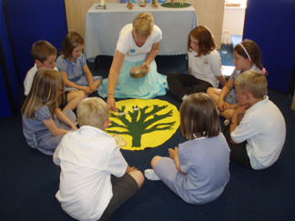 It was developed by Jerome Berryman in the United States, based on the work of Sofia Cavaletti and Maria Montessori. Godly Play uses symbols, artefacts, religious language and silence to help children make sense of their own spiritual experiences. Setting![]() The setting is an important part of Godly Play. From the moment the children arrive in the Godly Play room, they are aware that they are in a special place. In front is a focus table with the figures of the Holy Family, the Good Shepherd and a candle to symbolise Jesus as the light of the world. Behind the Holy Family is a figure or painting of the risen Christ. Elsewhere in the room are the materials for the Godly Play stories - wooden figures, a desert box filled with sand, golden parable boxes. The art materials that will be used later in the session are also displayed. StorytellingThe session begins with creating community. There are two adults in the Godly Play room - the Storyteller and the Doorkeeper. The Doorkeeper greets the children at the door and invites them to sit in a circle facing the Storyteller. When the children are ready the Storyteller fetches the day's story. There are three different genres of story in Godly Play: Parables, Sacred Stories from the Old and New Testament, and stories relating to the church's liturgy - Baptism, the Eucharist, the Circle of the Church Year. The stories are told on the floor using wooden figures, coloured underlays and pictures. Some of the stories are told using a sand tray - the "desert box." The parables are kept in gold boxes. When the Storyteller has finished telling the story, the children are asked "wondering questions" designed to help them reflect on the story and make their own meaning. There are different types of wondering question for each genre. For example after narrative stories the wondering questions might include, "I wonder which part of the story you like the best?" and "I wonder if there is any part of the story we could leave out and still have all the story we need?" After a parable the children might be asked, "I wonder where this whole place really is?" ResponseAfter the story and wondering questions the children are given the opportunity to make their own response to the day's story. They can work with a variety of art materials - paints, felt tips, pastels, clay or saltdough, glue and scissors. The children can also choose to work with the day's story or with a story they have been told in previous sessions. The children are expected to be responsible for getting out and putting away their own materials. The feastThe Godly Play session finishes with the children coming back to sit in the circle. There is an opportunity for children to pray - aloud or in silence - or to indicate that they don't want to say a prayer. The session finishes with a feast where the Doorkeeper helps the children to serve a drink and simple snack. The Storyteller says good-bye to each child individually, who then goes to the door where the Doorkeeper prepares them for leaving. Godly PlayGodly Play gives children the language and opportunities to reflect on our existential limits such as freedom, death, suffering and being alone. It gives them the space and silence necessary for their own spiritual development and a creative environment for them to make their own personal response. They experience Godly Play as part of a nurturing community. Godly Play takes place in many different settings - churches, schools, clubs - and with a variety of age groups from pre-school to adults. The setting and the structure of the session is adapted to fit this - for example a school group may only have a focus shelf and a church may miss out parts of the session to fit with the time available for children's work. It may also used with people with special needs such as children in hospital or adults with dementia. Godly Play resourcesSetting up: How do you start doing Godly Play? What materials would you start with? Our thoughts about developing Godly Play in four stages from "Trying it out" to "Developing a Godly Play room". Beginnings 1: The experience of a small village church setting up Godly Play in the space under the tower! Beginnings 2: A town church's experience of starting Godly Play... Free response: Why do we have a free response following the storytelling and wondering? Wouldn't it be better to have a set activity? Godly Play resources: Links for places where you can buy Godly Play resources; suggestions for books, websites and blogs Godly Play in school: How does Godly Play work in a school setting? |