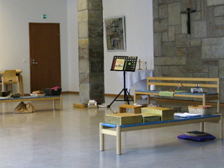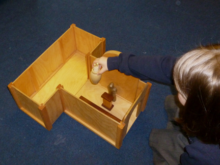 Setting up a Godly Play Room![]() Very few churches (if any!) will be in the position of being able to afford to equip an entire Godly Play room instantly from scratch. What follows is based on our experiences of setting up Godly Play in our own churches and other settings. Although in places we suggest some alternatives, we believe it is worth buying the authentic materials when you can afford them. It is also a good idea to attend an introductory training day so as to understand the thinking and ethos behind Godly Play. Stage 1: Trying it out![]() Setting:It is important to set the right atmosphere for Godly Play. If you are setting up in a large space (for example a church hall) you might like to use screens to create a more focused space, or arrange tables in a semi-circle. If you are doing it in a cluttered room, we find it is helpful to throw sheets over the clutter to reduce the "busyness" of the room. Behind the storyteller there should be a focus table with a nativity set, candle, Good Shepherd and sheep. If possible use a plain wooden nativity; the baby needs outstretched arms and to be separate from the manger. If you can, have a poster or figure of the Risen Christ behind the nativity scene. ![]() Stories:We would suggest the Creationcards (which can be made at home) and theParable of the Good Shepherd.The two dimensional figures of the Good Shepherd and sheep can also be made at home, coloured and laminated. The golden parable box can be made from a shoebox and covered in gold paper. Felt for the underlay, water, sheepfold and places of danger can usually be bought locally. Response materials:Paper and card in different colours; pens, pencils, crayons,and felt tips; paints; glue and scissors; playdough or salt dough. Stage 2: Starting outSetting:In an ideal world we would all have a dedicated room, permanently set out with Godly Play materials. The reality is that many of us do Godly Play in places that are used for other things. Some of us may be lucky enough to have cupboard space but for others it is a case of loading crates and boxes and storing everything at home. Between us, we have done Godly Play in dedicated rooms, church, classrooms, staffroom, school and church halls, school library and cloakrooms. Some of these places have no natural lighting and some have no running water... What makes sacred space? In this photograph (courtesy of Storyteller at Wonderful in an Easter kind of way) the furniture has been moved to create a more intimate area. The focus shelf has been aligned with the cross on the wall and the other benches used for the golden parable boxes and the baskets of stories. Orientation can make a difference: I once rotated the setting to face the opposite wall and was amazed at how much calmer and more focused the children became. ![]() Stories:At this stage our first choice would be to add the desert boxand thepeople of God, which enable you to tell many of the stories in Book 1 including The Great Family, Exodus and Exile and Return.The Ten Best Ways to Liveis a desert box story that can be made by buying a heart shaped cardboard box, painting it red and making your own cards.We use under bed storage trays bought from our local DIY store. These have the advantage of being on wheels so can be moved easily. Play sand can be bought from most toy departments and shops and even from supermarkets. We have also experimented with using a sand bag, which is useful if you have nowhere to store a desert box. ![]() We would also include the Flood and the Ark; while the Godly Play set is relatively expensive you may be able to find a set that is suitable for telling the story.The rest of the parables: The Good Samaritan, the Mustard Seed, the Great Pearl, the Sower and the Leavencould now be added. Again, these can be made at home by colouring and laminating the pieces.The Advent cardsare easy to make at home. Frankincense and myrrh can often be bought locally (especailly at Christmas time) for telling the story ofEpiphany.![]() The Baptismset can be put together by using a cheap baby doll and buying jugs and basins from charity shops or bric a brac stalls.The cards for the Circle of the Holy Eucharistcan be made at home and adapted to your own service.Response materials:You might like to add clay and artists pastels to your existing art materials. Coloured pieces of material, shiny paper and sequins are useful for creating collages. Stage 3: Establishing a Godly Play room![]() This was the time when we started buying the authentic Godly Play materials. We would suggest Jerusalem and Bethlehem, the Holy Family, the Liturgical Clock Circle of the Church Year, Jonahand theGood Shepherd and the World Communion.You might also like to replace homemade parable figures with the wooden 2 -dimensional ones. Our Faces on the Wayseries for Lent was painted by a member of the congregation but they can be bought from a Godly Play supplier, as can the series of pictures for the story ofPaul.Response materials:We added wooden blocks of different shapes and sizes at this stage. You might also like to include woodworking tools and different pieces of wood. Stage 4: Developing Godly Play![]() Not all of us have reached this stage! This would be the time to save up for the expensive items: Synagogue and Upper Room, the TabernacleandThe Temple.You might also like to collect the items for the stories of the Old Testament characters and the Prophets from Book 6 and the stories of the Saints from Book 7, many of which can be home made. It is worth remembering that several diocesan resource offices (in the Church of England) and some churches have Godly Play sets available to borrow or share, so you don't have to buy everything yourself. |