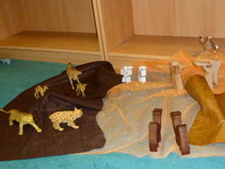 Lent Play and Prayer Stations for Under 5s![]() These play and prayer stations for pre-school children were inspired by "Shed for Lent", a Lenten prayer journey for primary school children, written by Rachel Nicholls and set up in a local church. Pre-school children can be taken around the different stations using a simple script to tell the story of Jesus in the desert. They are then free to play with the materials. 1 Baptism![]() Materials:Water or material to represent water, fish, shells, doves, blue material for underlayScript:Jesus' journey began with water. He asked his cousin John to baptise him in the River Jordan.When Jesus came up out of the water, the Holy Spirit came down like a dove and hovered over Jesus. People heard a voice which said "This is my beloved son, I am really pleased with him." Then Jesus crossed over the river and the Holy Spirit led him into the desert. 2 Shelter![]() Materials:Play tent (or make a shelter with blankets and chairs); octons, stickle bricks or other building materialsScript:Jesus went into the desert. The desert is a dangerous place. In the day it is very hot, but at night it can get really cold. The wind blows in the desert and you need to find shelter. Look this is our shelter. You can go inside for a rest, and to read some of the stories of Jesus.I wonder where Jesus found shelter in the desert? 3 Bread and Stones![]() Materials:Stones, play bread, other play food - pizza, cake, vegetablesScript:Jesus was in the desert for a long time. He didn't have anything to eat. He was very, very hungry.He heard a voice say, "Why don't you turn these stones into bread?" Jesus thought for a bit. Then he said, "No." 4 High up on the temple![]() Materials:Jesus figure; model of Jerusalem/temple or something to represent the temple; angel figure; duplo blocks, building bricksScript:Jesus felt as if he was on top of the great temple in Jerusalem. He was very high up. He heard a voice say, "Why don't you leap off the temple? God will send his angels to catch you."Jesus thought for a bit. Then he said, "No." 5 All the countries of the world![]() Materials:Jesus figure; box covered with cloth to represent the mountain; small globes; crown and jewels; play mat; play buildings; play peopleScript:Jesus felt as if he was on top of a really high mountain. He could see all the countries of the world and all the people of the world. He heard a voice say, "If you worship me, I will make you king over all these countries and all these people."Jesus thought for a bit and then he said, "No. I don't want to be that kind of a king. I want to worship God." 6 Alone in the desert![]() Materials:Jesus figure; brown cloths (or sand box if possible); wild animals; angel figuresScript:After Jesus had made his choices he found himself alone in the desert with the wild animals.The angels came to be with him. Jesus stayed in the desert for a long time, thinking and praying. Then he went back across the river to be with people, help them and teach them. You can download a PDF of the script: here Victoria |