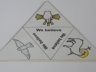 Liturgy box contents for weekly worshipThis lists some of the possible items connected to worship and the Christian faith that might be in a child's liturgy box and how the objects might relate to a service of worship. The items may change and develop with the age of the child. GatheringMost services have some form of Gathering at the beginning of worship. As we come together we remember that we are joined together as the Body of Christ. Linking toys (octons, rings, teddies) symbolise our coming together. Children might use linking toys such as Galt Octons, Linking Rings, Linking Teddies. Children may like to join linking toys together with other people as they arrive at church. Perhaps a whole congregation might join in making a linking toys sculpture to depict gathering together as the family of God. WelcomeMost forms of worship have a welcome at the beginning of the service. Some denominations have specific greeting phrases. Children may like to wave a "Hello Flag" with the picture of a waving hand on it and the relevant greeting. e.g. "And also with you."(Common Worship) ConfessionThere may be an informal or more formal prayer of Confession where people say they are sorry to God. Children may have a "Sorry" book. They may also have a "Sorry" cube with pictures of children being careless or unkind, together with pictures of them putting things right. After the Confession there may be a prayer of forgiveness. The "Sorry Book" is then put away, possibly in a little bag, symbolizing that the past is behind and that we are forgiven by God. Likewise the picture cube is turned upside down to show the words "You are forgiven". GloriaAs God's forgiven people some churches may sing in praise to God e.g. the Gloria. Children could wave a small flag with the words Glory to God on it. They may also wave multi coloured ribbons on a small ring. Bible ReadingMost services include a reading from one or more books of the Bible. The liturgy box might contain a small children's picture Bible or small books of individual Bible stories, if possible of the days reading to look at during the Bible reading. BaptismMany denominations baptise people into the church. Items relevant to a denomination's Baptism theology might be included. A small bowl, a small jug, a shell, and a small baby doll may be applicable for infant Baptism. PrayerMost worship services will have some form of intercessions. These might include prayers for the church, world situations, people who are sick, our families and homes and remembering people who have died. A prayer cube showing each of the main prayer headings can be held during the prayers helping the child to focus on different topics during the prayers. The children also have symbols for the different topics for prayer: e.g. a small globe, a cross and a church, a play doctor's item for the sick, a selection of little people from different countries etc. CreedSome denominations say a form of Creed during the worship. During the Creed the children might hold a triangle with symbols for God the Father, God the Son and God the Holy Spirit. They may like to have small objects instead: a world symbolizing God the Father, a cross for Jesus and a dove for the Holy Spirit. CollectionMost churches have some means of collecting the money gifts from the congregation. Children may like to have a small bag or purse in their box for their collection. The box contains a little bag for the children's collection money. The PeaceSome denominations share the Peace at some stage during the service. A card can be included in the liturgy box with the words used. Children can be encouraged to share the Peace. Holy CommunionMost denominations share in Holy Communion. If the children are present for the Communion Service a small wooden cup, plate, play bread and grapes and children's books about Communion could be included. Children make connections between the play items and the actions and story encountered in the Communion. The Agnus Dei... Lamb of GodSome denominations sing or say a form of the Agnus Dei... lamb of God, you take away the sins of the world, have mercy on us. A small lamb could be included in the box, symbolising Jesus, the Lamb of God. The DismissalWorship may have some form of some closing prayer such as the Grace or Blessing and possibly a congregational response. A "Good-Bye flag" with the relevant words may be included in the Liturgy box. Carolynn |