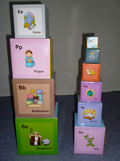 Christian Toys for Under 5s![]() We believe that when we are running Christian pre-school groups or organising worship for under 5s, it is important that the toys and materials reflect this. There are many toys that fit with Bible stories and themes or are symbols of Christianity. It can be expensive to set up completely from scratch, so it may be best to start small and slowly add resources. Another possiblity is to ask members of the congregation to "sponsor" a toy. Some toys (like the knitted figures) can be made at home. When focussing on a particular theme we may bring in other toys - for example if the theme was "journeying" we might bring in a road mat, cars, trains etc. Below is a selection that we have found works well in our settings. ![]() Rainbow (Noah / symbol of hope)This 12 piece wooden rainbow is pricy but this is the toy every child is drawn towards and they use the wooden arches in a variety of imaginative ways. Smaller 6 piece versions are available but don't have quite the same impact . ![]() The Ark (Noah)Arks come in all sizes and prices. Although expensive I like this wooden ark as it is big enough for several children to play with together. It comes with 11 pairs of animals including two doves (one with a sprig of greenery in its beak) and the figures of Noah and his wife. This is probably one of the most popular toys with the children. ![]() Nativity figuresThere is a wide choice of nativity sets available and you may like to have several different sets. I've found the knitted figures work well with pre-schoolers - they are a good size for them to hold. This set was knitted from a pattern from Jean Greenhowe designs: Click here ![]() Bible story and other figuresA choice of figures that can be used to retell Bible stories or just for play. The knitted figures were made as part of a church project to knit the Last Supper. You can find a pattern here The figures need secure bases as they can be hard to stand up. I made female figures by taking the beards off some of the disciples. The wooden figures can also be used in sand trays. This set is from templates in Young Children and Worship (Jerome Berryman and Sonia Stewart). ![]() Baby dolls (Jesus/ Baptism)A variety of baby dolls of different ethnicities that can be used either for baby Jesus or for baptism stories. ![]() WaterWooden water puzzle - can be used for baptism, creation, story of Jesus calming the storm, Jonah etc. ![]() We also use blue shiny cloth, water animals, boats and people - and sometimes real water! ![]() Sheep (The lost sheep / Psalm 23)Plastic sheep and lambs (include different colours and varieties of sheep if possible). Green felt can be cut into circles and other shapes to represent fields and grass. You may like to add blue felt for water, a sheep fold and a shepherd figure. ![]() Bible animalsA basket of Bible animals. Ours includes: lion (Daniel); camels (Wise men); cockerel (Peter); sheep and goats (many stories but including Abraham and Sarah and other nomadic figures); whale (Jonah); fish (great catch of fish); donkey (Palm Sunday); snake (the fall); bear (David) ![]() Butterflies etc (Resurrection / transformation)The butterfly, transformed into something wondrously beautiful after its time in the cocoon, has long been seen as a symbol of Christ's resurrection. As well as butterflies, cocoons and caterpillars we have also included tadpoles, froglets and frogs as symbols of transformation. The brightly coloured, multi-textured Hungry Caterpillar and butterfly are favourites with babies. ![]() Flame (Pentecost)The wooden flame puzzle can be used as a symbol of the Holy Spirit. We also use it to symbolise light (Creation) and fire. ![]() JerusalemThis wooden model of Jerusalem (from St Michael's workshop) has been used in many stories from the Old and New Testament. Here it is at the end of the road for the story of Palm Sunday. ![]() Felt shapesPre-schoolers like laying these different coloured squares and circles out in patterns and re-arranging them or using them as the underlay for stories. We often have a selection of shapes in the colours of the season (purple for Advent and Lent, white and gold for festivals, red for Pentecost and green for ordinary time) . ![]() Stacking beakersThese are always popular and especially good to use with under 2s. This set (Noah's ABC stacking blocks by alphabet alley) is hard to get in the UK but still available in the US. The letters of the alphabet are linked to particular Bible stories and symbols (V for vine for example). Food![]() Food turns up in many Bible stories, for example the Great Feast, Feeding of the 5000, the Last Supper, Breakfast on the beach. The basket of brightly coloured wooden fruit and vegetables is useful for harvest and frequently played with (though we remove grapes and cherries if there are under 3s). It's been harder to find good quality bread; we have had to make do with a variety of wood and plastic bread. ![]() SandThe desert or wilderness features in many stories - Jesus' temptation, the escape from Egypt, the wanderings of Abraham and Sarah. Young children love the tactile experience of playing with sand. We add desert animals (camels, snakes,lizards etc) and wooden people. ResourcesIt's not easy to keep up with resources, as they can come and go quite quickly! However we do find these sites helpful: Mustard Seed Kids: a good under 5s section and especially good for wooden rainbow and flame and wave puzzles St Michael's workshop: wooden people and other resources from Young Children and Worship Early Learning Centre variety of playfood, boats, dolls etc |